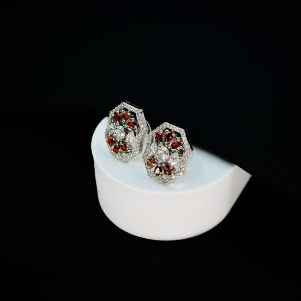 Gorgeous "Crimson Elegance" Maroon Gems Silver Earrings for Women