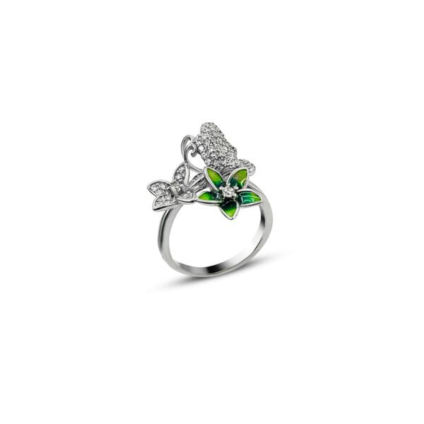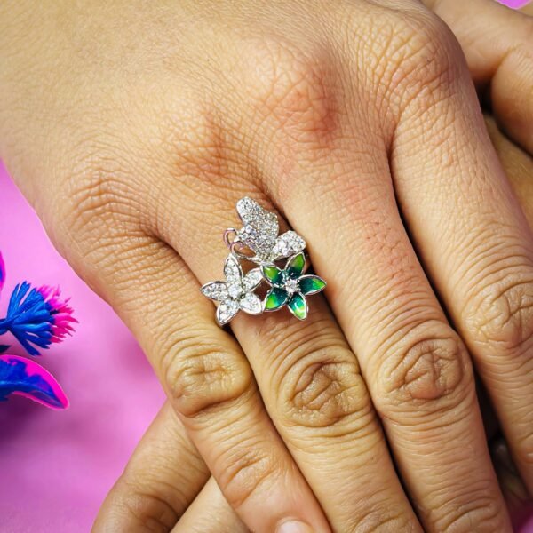 Delightful Green Flower CZ Silver Ring for Her